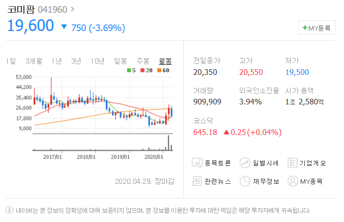 | 택배관련주 모아봤어요 (0) | 2020.04.30 |