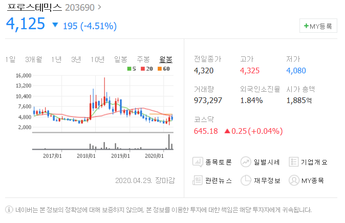 전일대비 195원 하락했으며, 4월 29일 4125원으로 마무리 되었네요.