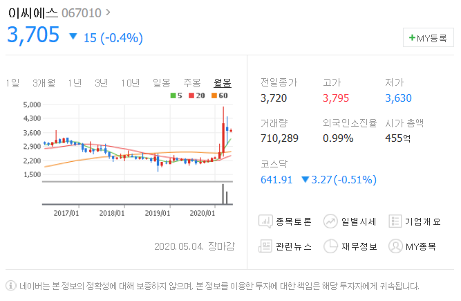 네번째는 이씨에스입니다. [ 067010 ]