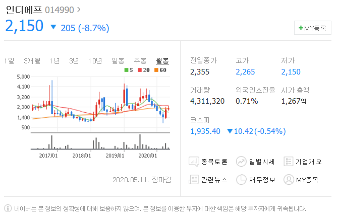 대북관련주, 인디에프