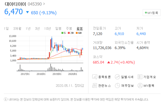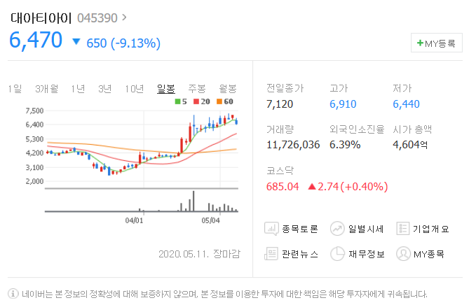 세번째는 대아티아이입니다. [ 045390 ]