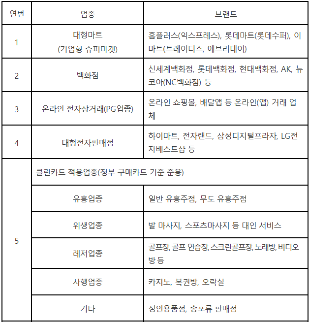긴급재난지원금 사용제한 업종