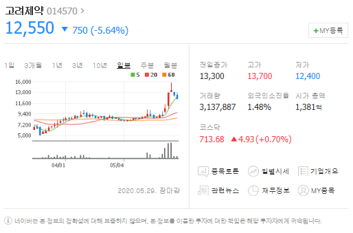 5월 29일 750원 하락했으며, 5월 29일 12550원으로 마무리 되었네요.