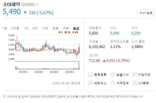 5월 29일 330원 하락했으며, 5월 29일 5490원으로 마무리 되었네요.