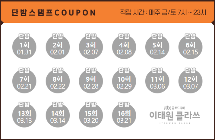 드라마이태원클라쓰를 시작과 함께 JTBC 공식홈페이지에서 16부작 이벤트도 진행하고 있어요. 이 부분도 소소한 재미가 될 것 같아요.