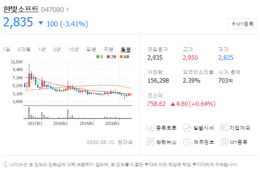 여섯번째는 한빛소프트입니다 [ 047080 ]