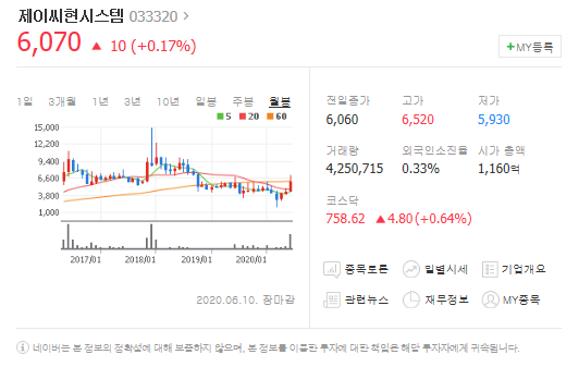 두번째는 제이씨현시스템입니다. [ 033320 ]